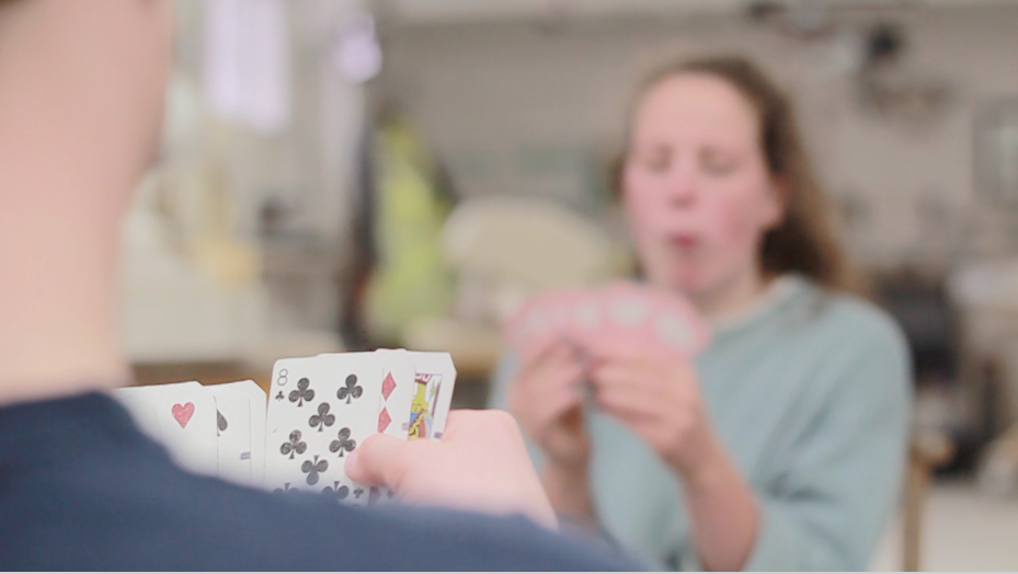 I also filmed the apprentices playing cards as well, providing multiple coverage for the scene, using the wide angle zoom lens for primary coverage, and getting close-ups with the 50mm prime lens, whilst making sure that i didn't cross the line. However, i filmed two separate versions, one version one side of the line, and the next the opposite side of the line, to then choose out of the two.